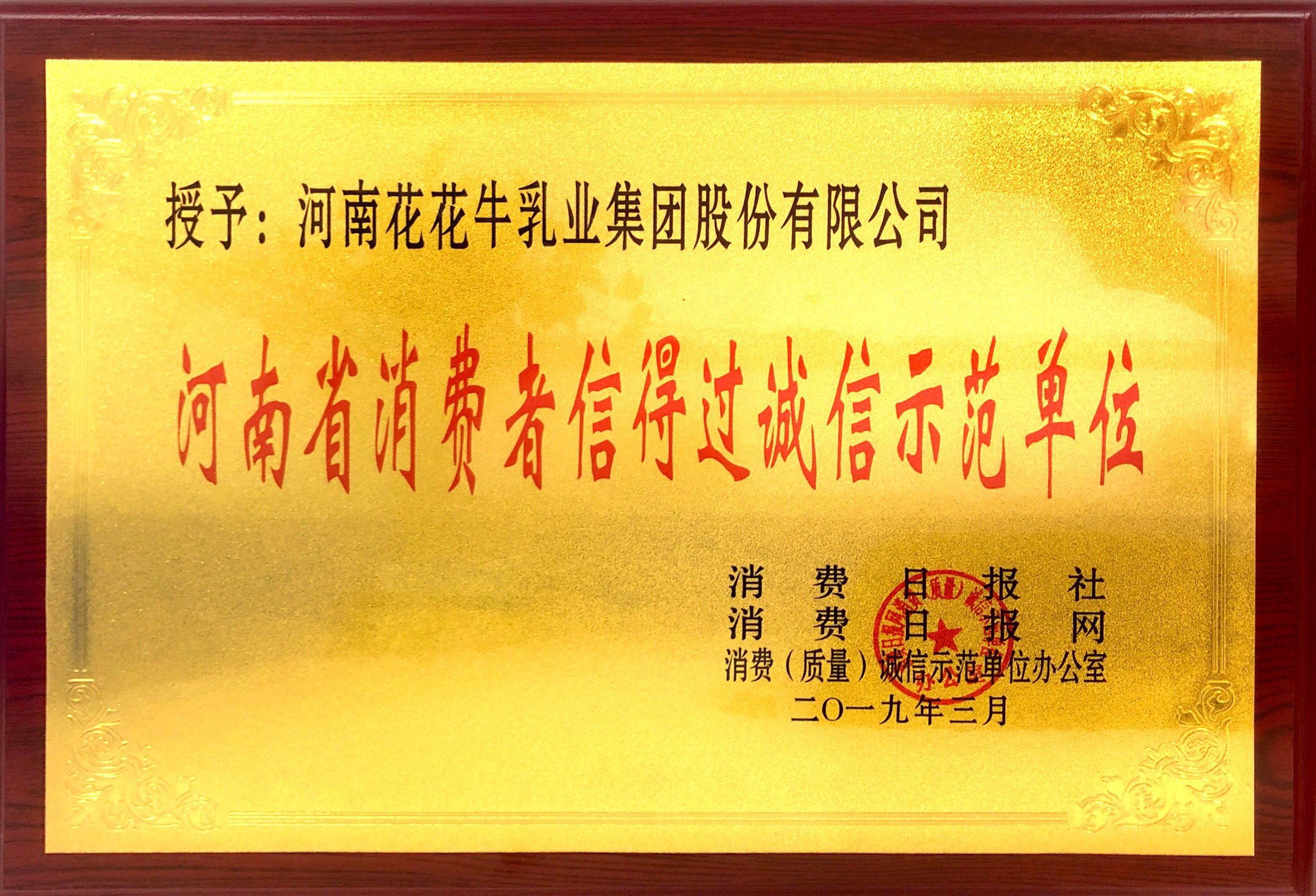 2019年“誠信品牌放心消費(fèi)”典范企業(yè)