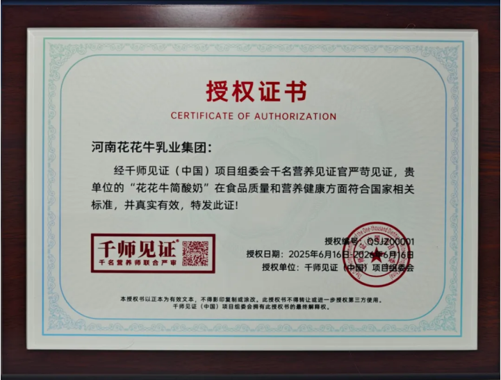 隨后雙方舉行授牌儀式。據(jù)了解,河南花花牛乳業(yè)集團(tuán)是*通過千師見證(中國)項(xiàng)目組委會(huì)“千名營養(yǎng)師”認(rèn)證的企業(yè)。此次授牌含金量相當(dāng)之高,標(biāo)志著花花牛在質(zhì)量管控、技術(shù)創(chuàng)新、產(chǎn)品健康方面,為區(qū)域乳業(yè)高質(zhì)量發(fā)展樹立了新范式。